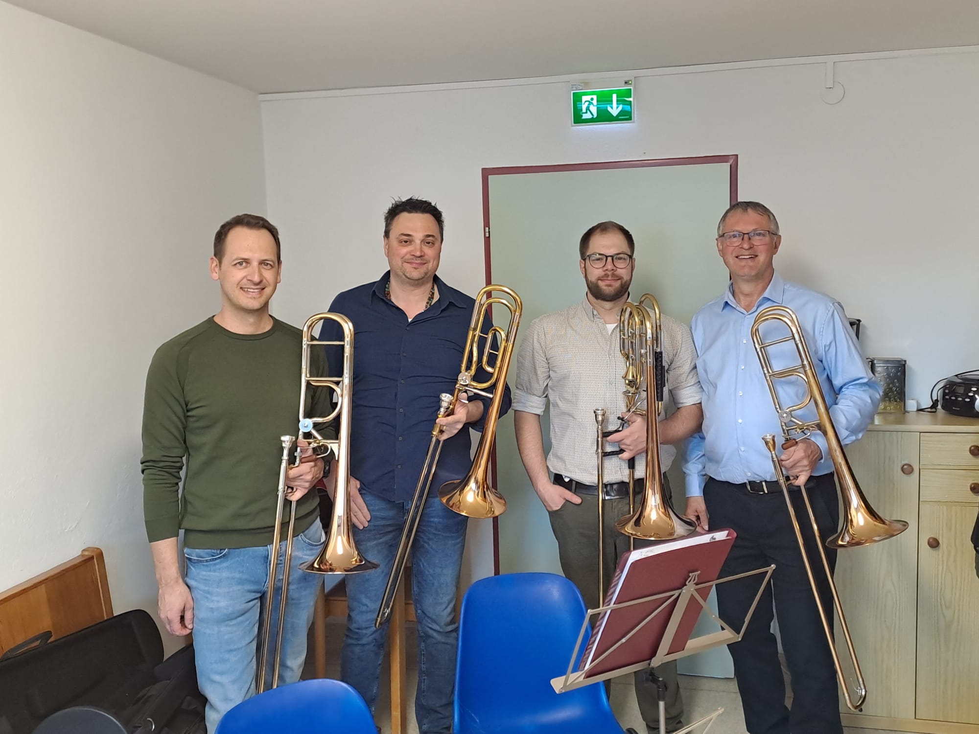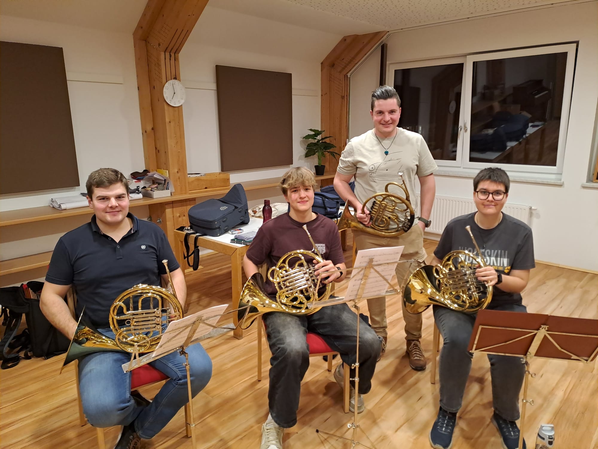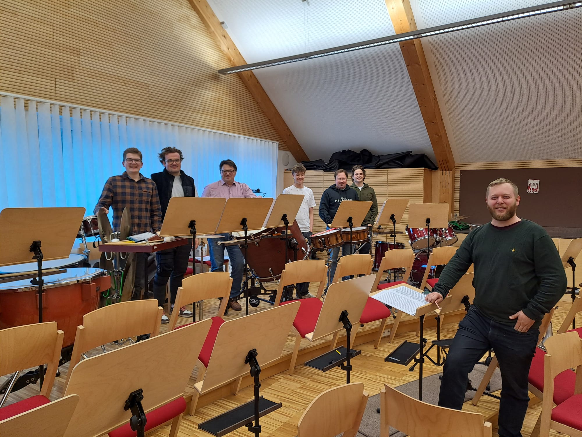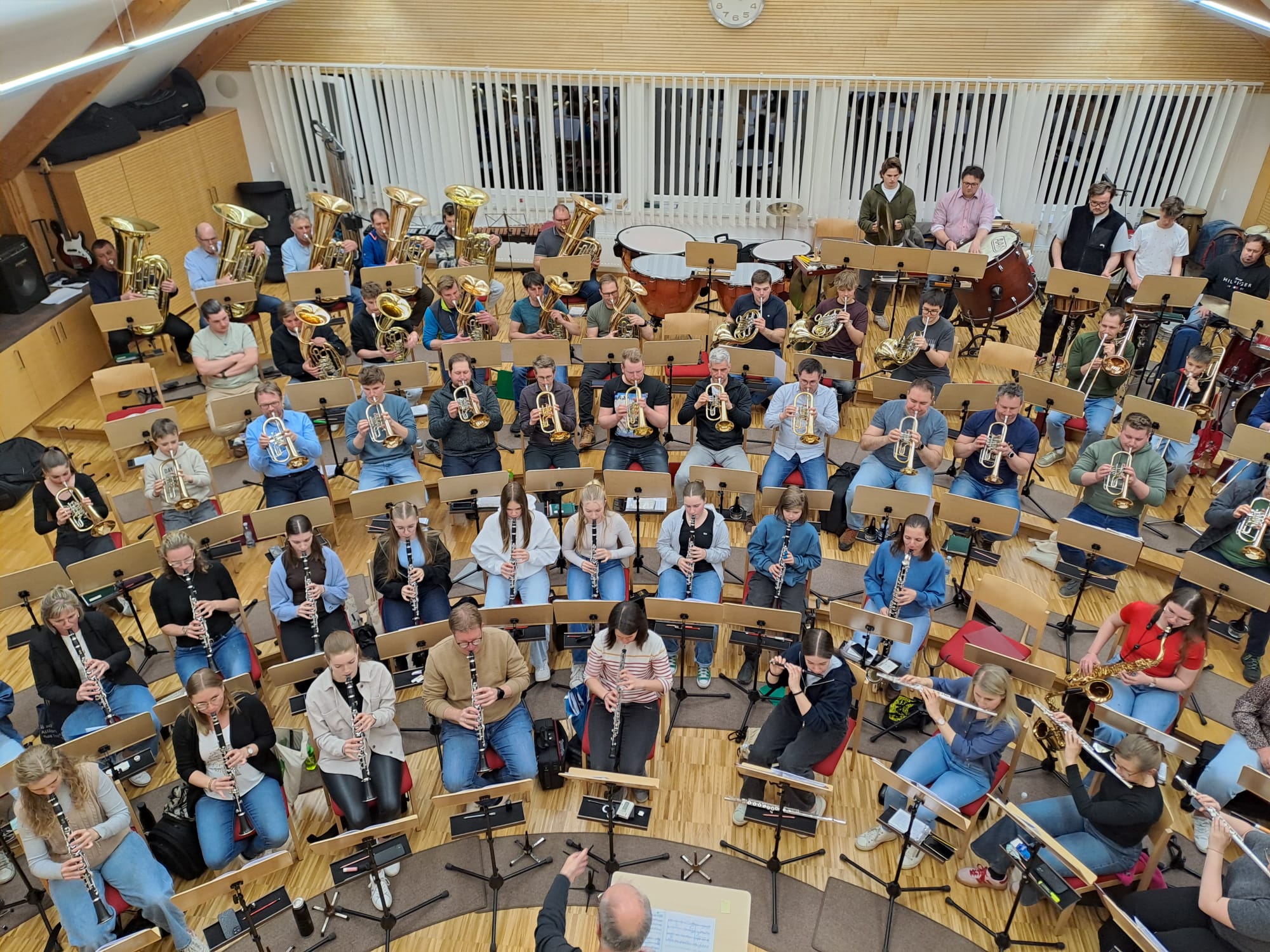 Der Nachmittag begann mit Registerproben, die von externen Musikern geleitet wurden. Dabei arbeiteten die einzelnen Gruppen – Schlagwerk, hohes Blech, Posaunen, Hörner und Saxofone – gezielt an Klang, Technik und Zusammenspiel. Diese intensive Arbeit im kleinen Rahmen brachte viele wertvolle Impulse für die weitere Probenarbeit.