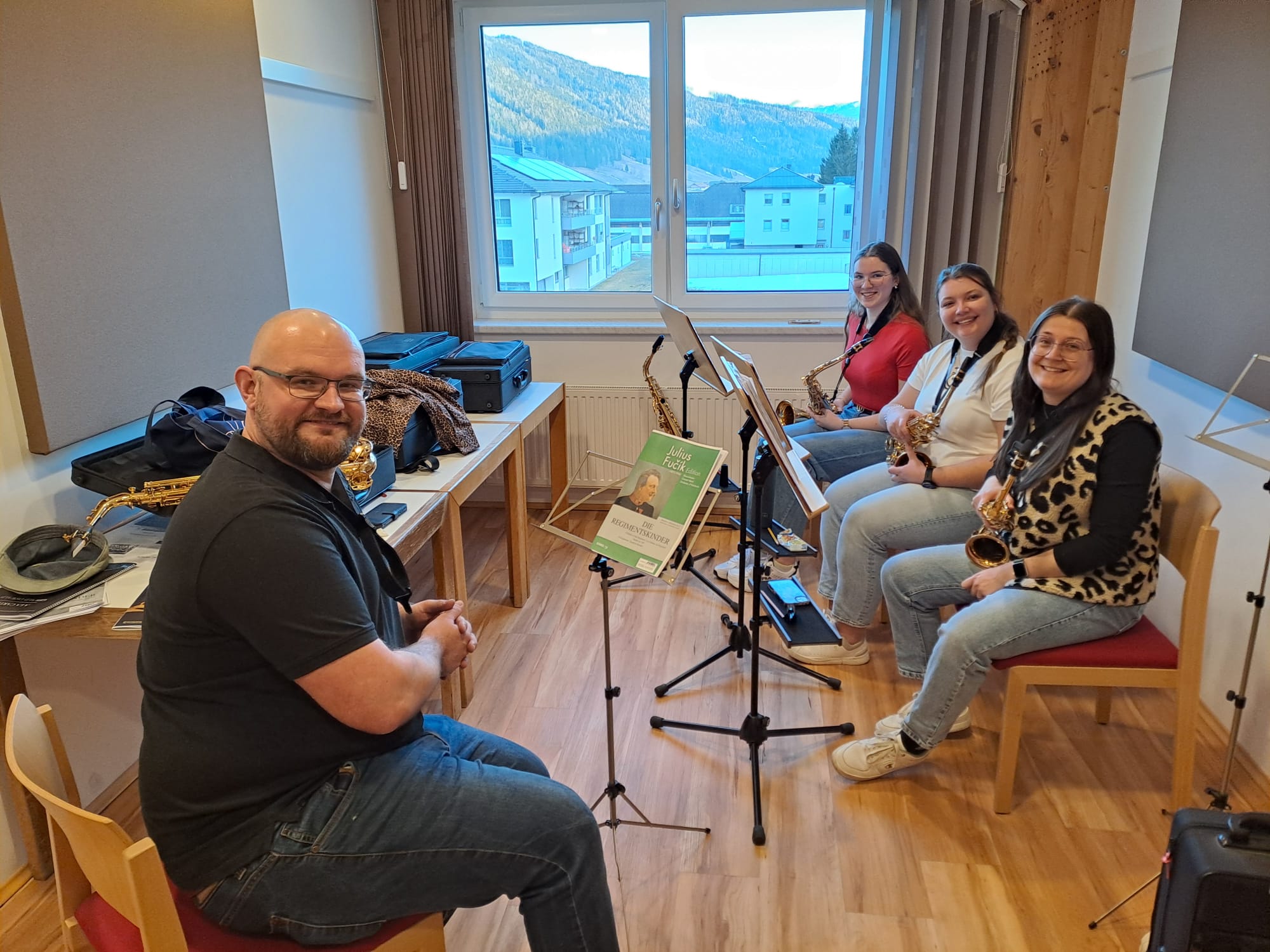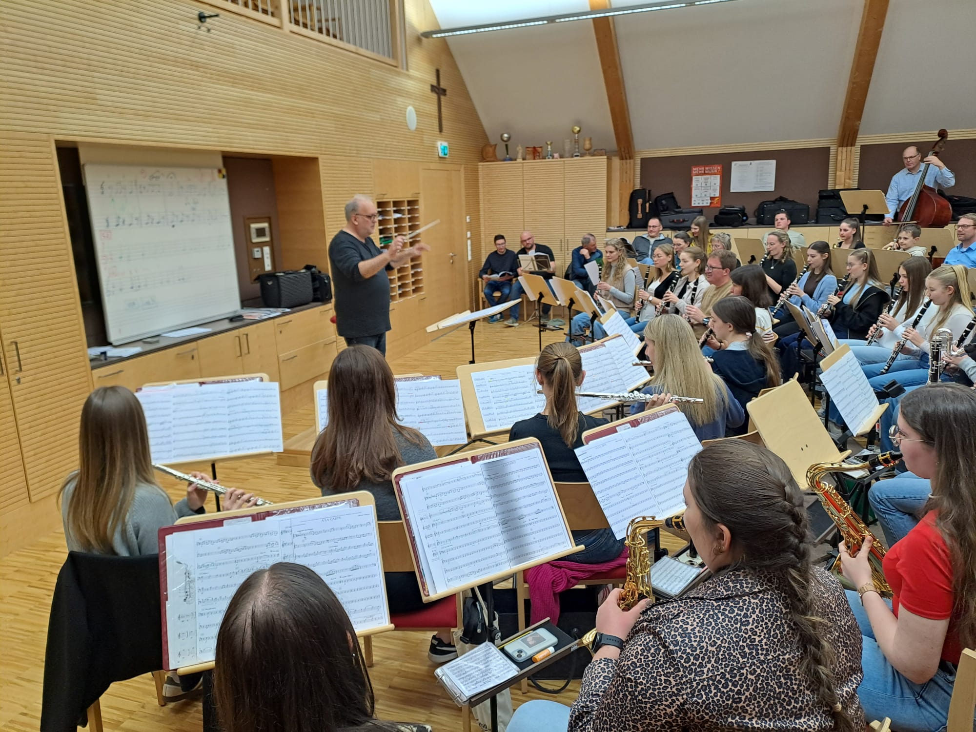 Nach einer kurzen Pause folgte am Abend eine besondere Lehrprobe mit dem Komponisten und Dirigenten Gerald Oswald. Gemeinsam mit ihm durften wir viele neue musikalische Eindrücke sammeln. Im Mittelpunkt stand dabei vor allem sein Werk „A la carte“, das wir sowohl beim Osterkonzert als auch bei der Bundeskonzertwertung aufführen werden.