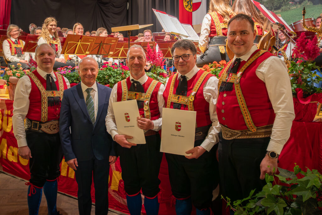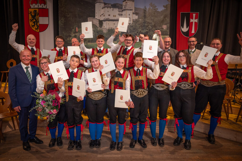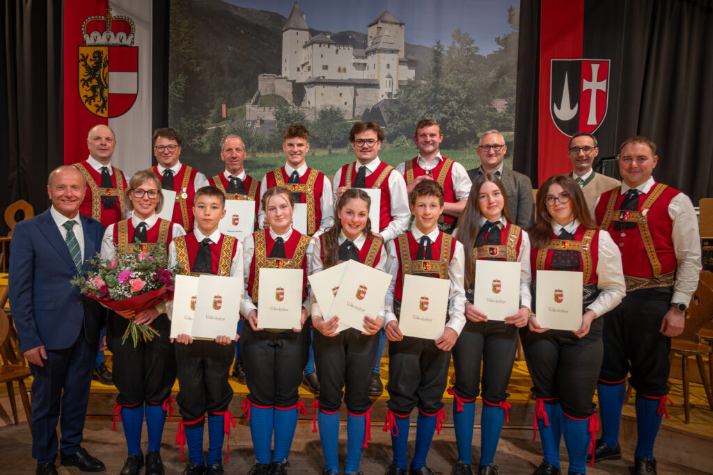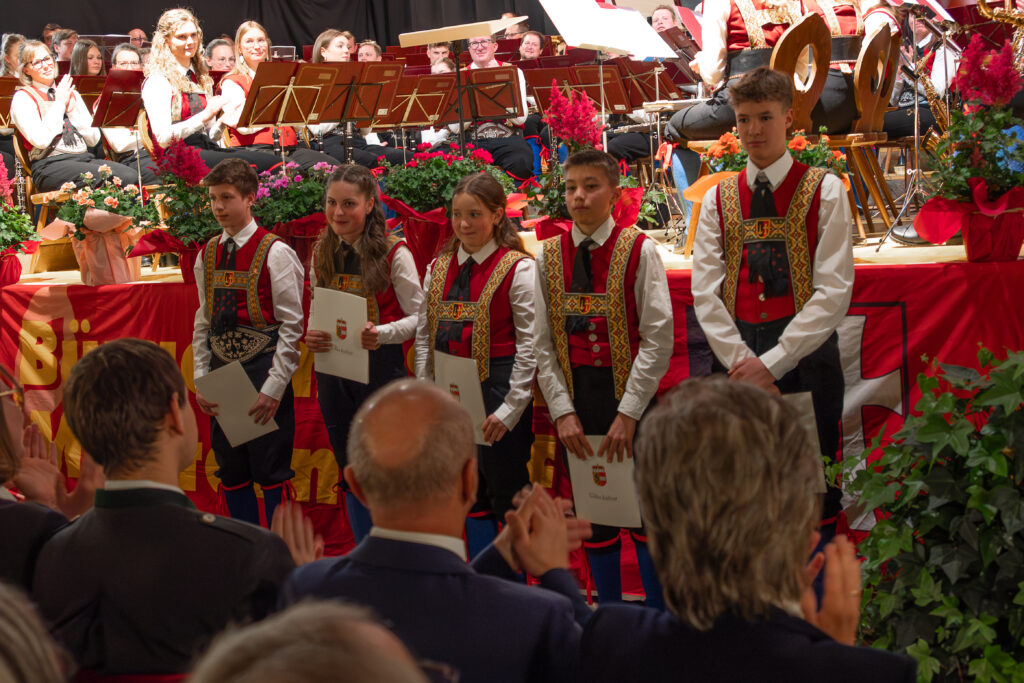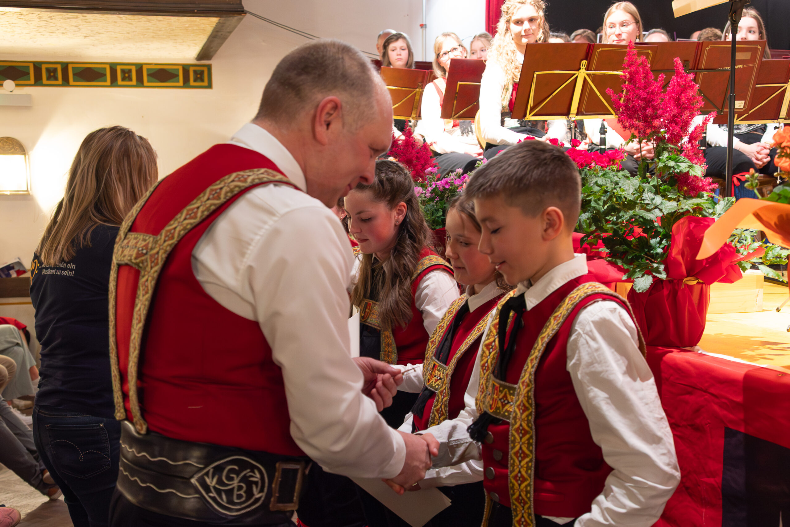Im Rahmen des Konzerts durften wir auch zahlreiche Ehrungen vornehmen und neue Mitglieder in unseren Reihen willkommen heißen. Über sechs Neueintritte freuten wir uns besonders: Valentina Kremser, Marlene Maier, Katrin Pertl, Johannes Maier, Jakob Mauser und Roman Pertl. Das Leistungsabzeichen in Bronze erhielten Valentina Kremser, Marlene Maier, Johanna Schitter und Jakob Mauser. Mit dem Leistungsabzeichen in Silber wurden Katharina Rausch, Marie-Christin Wieland und Samuel Neumann ausgezeichnet. Das Leistungsabzeichen in Gold ging an unseren Solisten David Wieland. Für ihre 40-jährige Mitgliedschaft wurden Christian Binggl und Peter Wieland mit dem Ehrenzeichen des Salzburger Blasmusikverbandes in Gold geehrt.